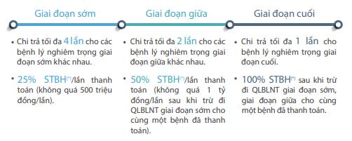 1. Quỹ bảo vệ Bệnh Lý Nghiêm Trọng (QLBLNT) : 300% Số tiền bảo hiểm được chi trả như sau: